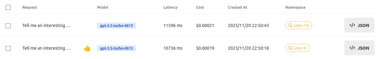 The Namespace for each request is shown in your GPTBoost [Request Log](https://docs.gptboost.io/features/request-logs). You can also filter requests by Namespace. To do that, click on the desired namespace on any of the requests in the log.
